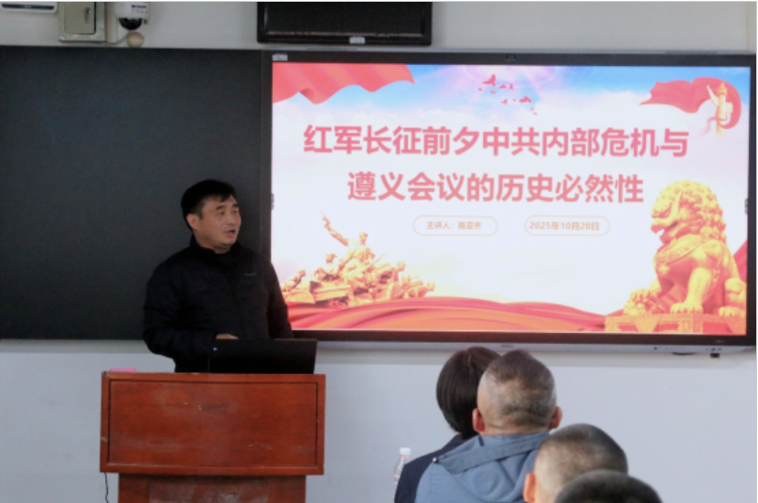 第一部分,周同宝老师以“从绝望到新生:历史为何选择中国共产党创建人民军队”为题,结合史料深刻剖析中国共产党创建人民军队的历史必然性;第二部分,陈飞老师聚焦建军之初的南昌起义、秋收起义、广州起义,系统梳理人民军队诞生初期的奋斗历程;第三部分,王勇老师阐述人民军队作为坚持和夺取抗战胜利中坚力量,展现军队在民族危亡时刻的使命担当;第四部分,袁宏斌老师围绕“抗美援朝保家卫国”展开,回顾志愿军英勇作战的艰辛历程与伟大精神;第五部分,唐吴磊老师以“雪域亮剑:1962年中印边境自卫反击战”为主题,再现人民军队保卫国家领土主权的铁血风采;第六部分,施亚齐院长深入分析“红军长征前夕中共内部危机与遵义会议的历史必然性”,为大家明晰这一重要历史阶段的核心脉络与历史抉择。
