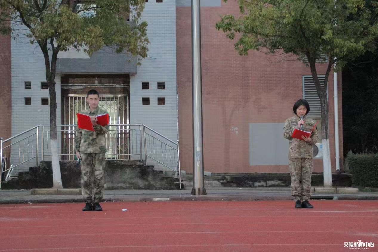 学员代表向剑儒、赵琳在国旗下发表题为“砺剑新征程,矢志报国情”的演讲。